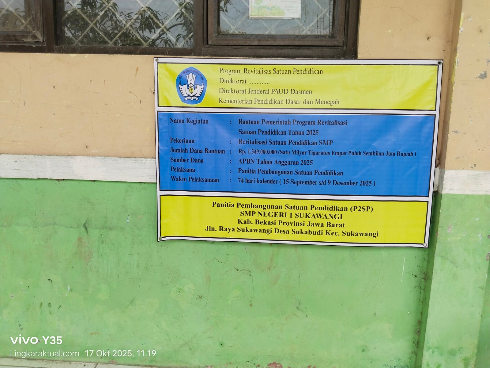 SUKAWANGI, KABUPATEN BEKASI || LINGKARAKTUAL.COM || – Proyek pembangunan revitalisasi Sekolah Menengah Pertama Negeri (SMPN) 1 Sukawangi, Kabupaten Bekasi, menuai sorotan publik. Pasalnya, pekerjaan yang seharusnya menjadi sarana peningkatan mutu pendidikan itu diduga tidak sesuai dengan spesifikasi (speck) yang telah ditetapkan dalam kontrak kerja. Jumat (17/10/2025).