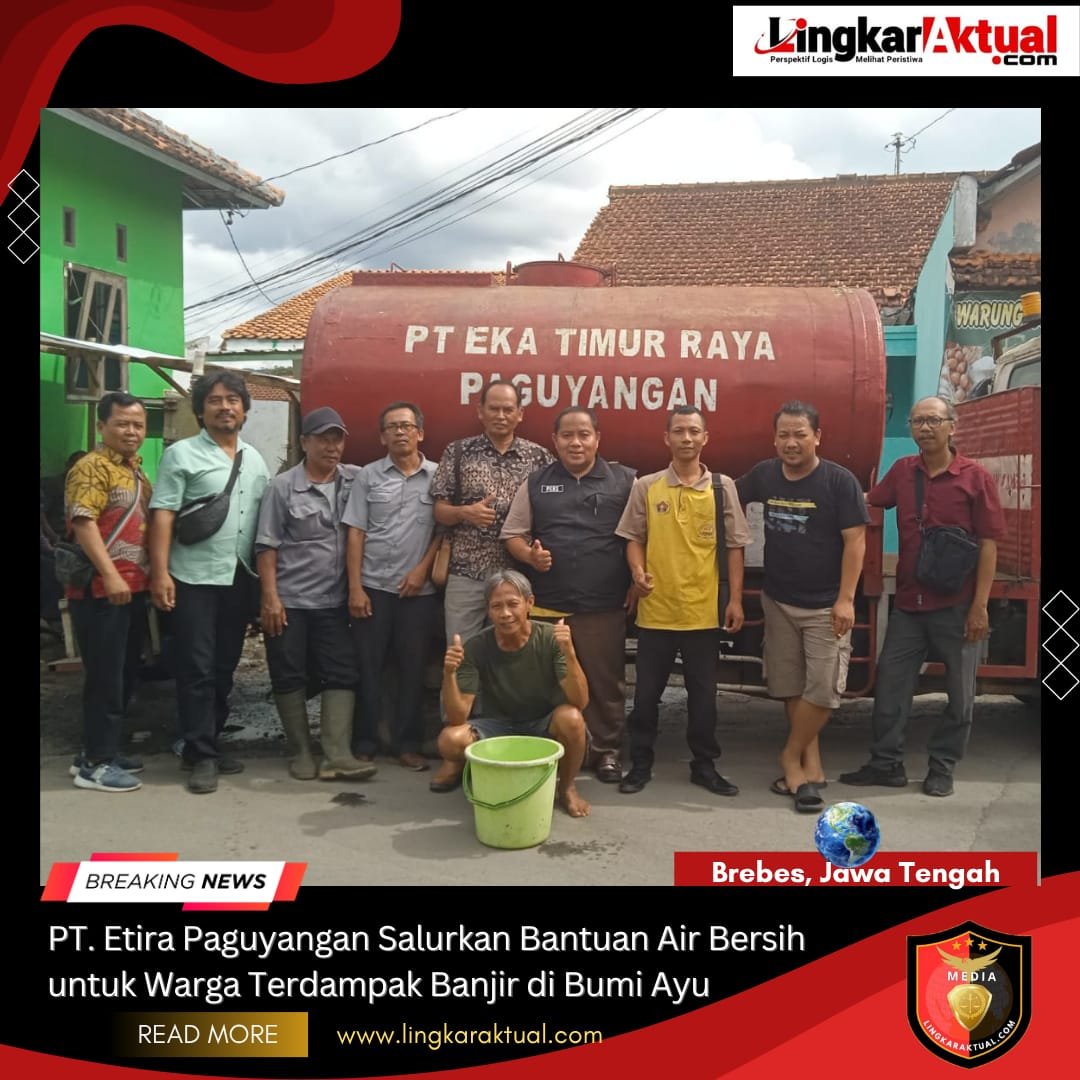 BREBES, JAWA TENGAH || LINGKARAKTUAL.COM || – Pasca banjir bandang yang melanda wilayah Kecamatan Bumiayu, Kabupaten Brebes, pada Kamis (13/11/2025), PT Etira Paguyangan (Eka Timur Raya) menunjukkan kepeduliannya terhadap warga terdampak dengan menyalurkan bantuan air bersih ke sejumlah desa yang mengalami kekurangan air layak konsumsi.