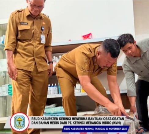 KERINCI, JAMBI || LINGKARAKTUAL.COM || – Rumah Sakit Umum Daerah (RSUD) Kabupaten Kerinci menerima bantuan obat-obatan dan alat kesehatan dari PT Kerinci Merangin Hidro (KMH). Bantuan yang diangkut menggunakan tiga mobil box tersebut diserahkan langsung kepada pihak rumah sakit sebagai bentuk kepedulian perusahaan terhadap peningkatan layanan kesehatan di daerah itu.