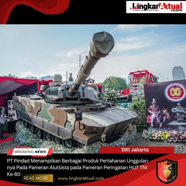 JAKARTA || LINGKARAKTUAL.COM || – PT Pindad menampilkan berbagai produk pertahanan unggulannya pada pameran alutsista yang diselenggarakan dalam memperingati HUT ke-80 TNI di Lapangan Monas, Jakarta pada 20-21 September 2025.