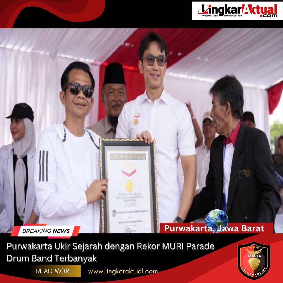 PURWAKARTA, JAWA BARAT || LINGKARAKTUAL.COM || – Minggu, 19 Okt 2025 – Purwakarta kembali menorehkan prestasi gemilang di kancah nasional dengan mencatatkan rekor Museum Rekor Indonesia (MURI) untuk kategori parade drum band dengan regu terbanyak. Acara bertajuk “Parade Drumband Gebyar Merah Putih” ini sukses memeriahkan peringatan Hari Jadi Purwakarta dan HUT RI ke-80, yang diselenggarakan pada Minggu, 19 Oktober 2025.