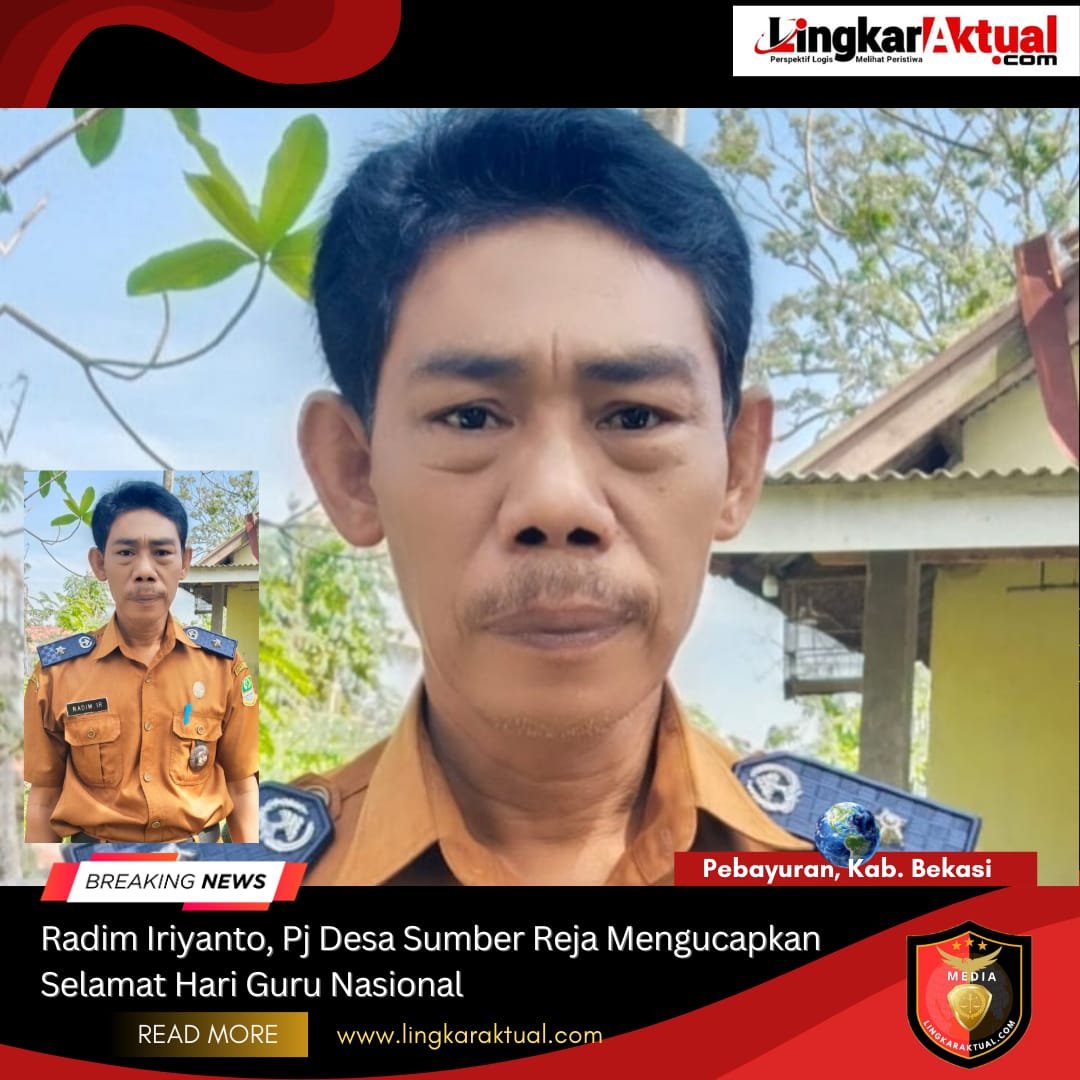 PEBAYURAN, KAB. BEKASI || LINGKARAKTUAL.COM || – Penjabat (PJ) desa sumber reja kecamatan Pebayuran radim Iriyanto mengucapkan selamat hari guru nasional Selasa 25-11-2025. Kepada seluruh guru di Indonesia.