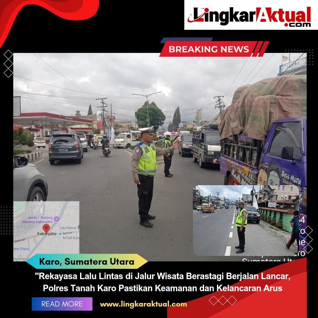TANAH KARO, Sumatera Utara || LINGKARAKTUAL.COM || – Dalam rangka mengantisipasi kepadatan arus lalu lintas menuju sejumlah destinasi wisata di wilayah hukum Polres Tanah Karo, Satuan Lalu Lintas Polres Tanah Karo menggelar kegiatan pengaturan dan rekayasa lalu lintas pada Sabtu (10/5/2025), mulai Pukul 11.00 hingga 18.00 WIB.
