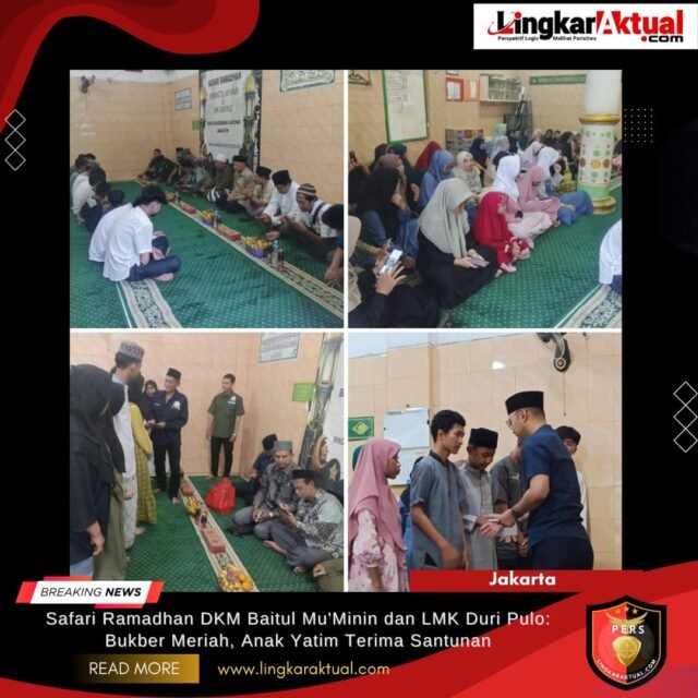 JAKARTA, LINGKARAKTUAL.COM – Momentum bulan suci Ramadhan dimanfaatkan untuk memperkuat kepedulian sosial. Dewan Kemakmuran Masjid (DKM) Baitul Mu’minin bersama Lembaga Musyawarah Kelurahan (LMK) Duri Pulo menggelar Safari Ramadhan yang dirangkai dengan buka puasa bersama dan santunan bagi anak yatim.