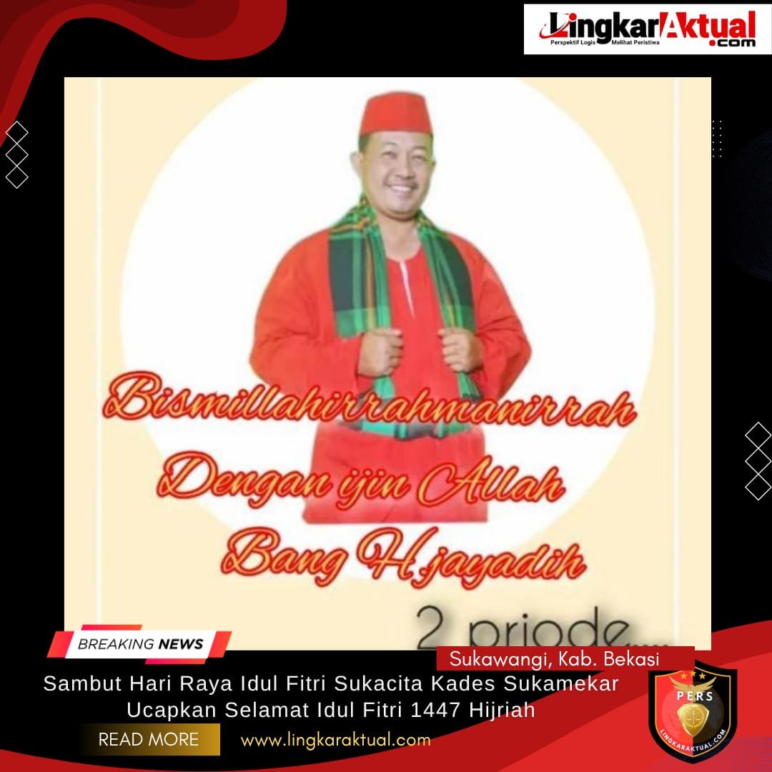 SUKAWANGI, KABUPATEN BEKASI, LINGKARAKTUAL.COM – Dalam suasana penuh kebahagia’an dan kemenangan kepala desa suka mekar H, jayadih menyampaikan ucapan selamat hari raya idul fitri 1447h/2026m kepada seluruh umat muslim di indonesia, 20/03/2026,