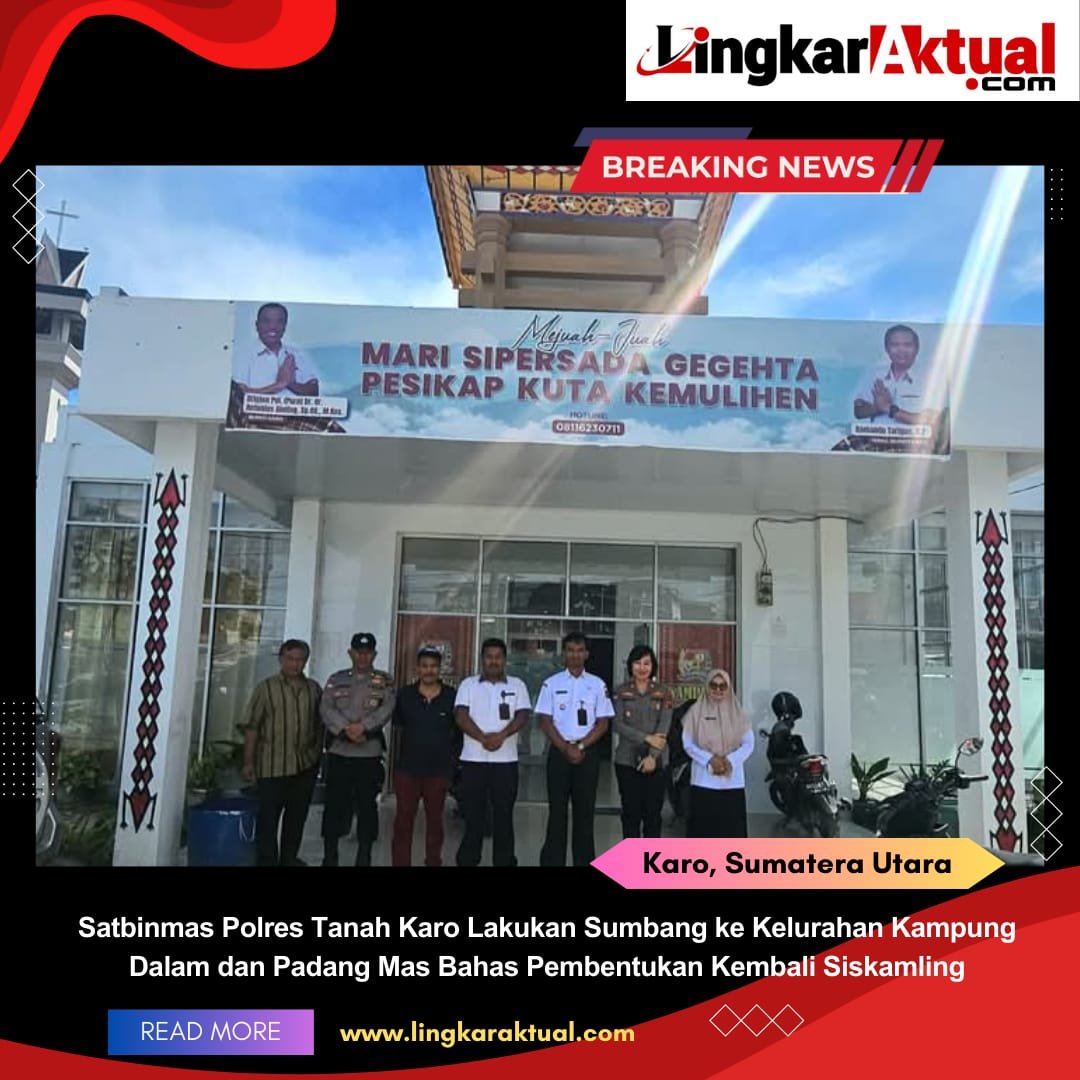TANAH KARO, Sumatera Utara || LINGKARAKTUAL.COM || – Rabu (7/5/2025), Satuan Pembinaan Masyarakat (Sat Binmas) Polres Tanah Karo melaksanakan kegiatan sambang ke dua kelurahan di wilayah Kecamatan Kabanjahe, yakni Kelurahan Kampung Dalam dan Kelurahan Padang Mas. Kegiatan ini bertujuan untuk membahas rencana pembentukan kembali Sistem Keamanan Lingkungan (Siskamling) sebagai upaya meningkatkan keamanan dan ketertiban masyarakat.