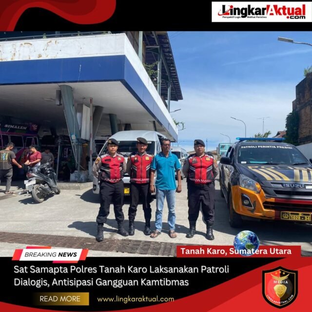TANAH KARO, SUMATERA UTARA || LINGKARAKTUAL.COM || — Lingkaraktual.com Dalam rangka menciptakan situasi keamanan dan ketertiban masyarakat (kamtibmas) yang kondusif, personel Satuan Samapta (Sat Samapta) Polres Tanah Karo melaksanakan kegiatan Patroli Dialogis di sejumlah titik strategis wilayah hukum Polres Tanah Karo, pada Rabu(29/10/2025), sekira pukul 10.00 WIB hingga selesai.