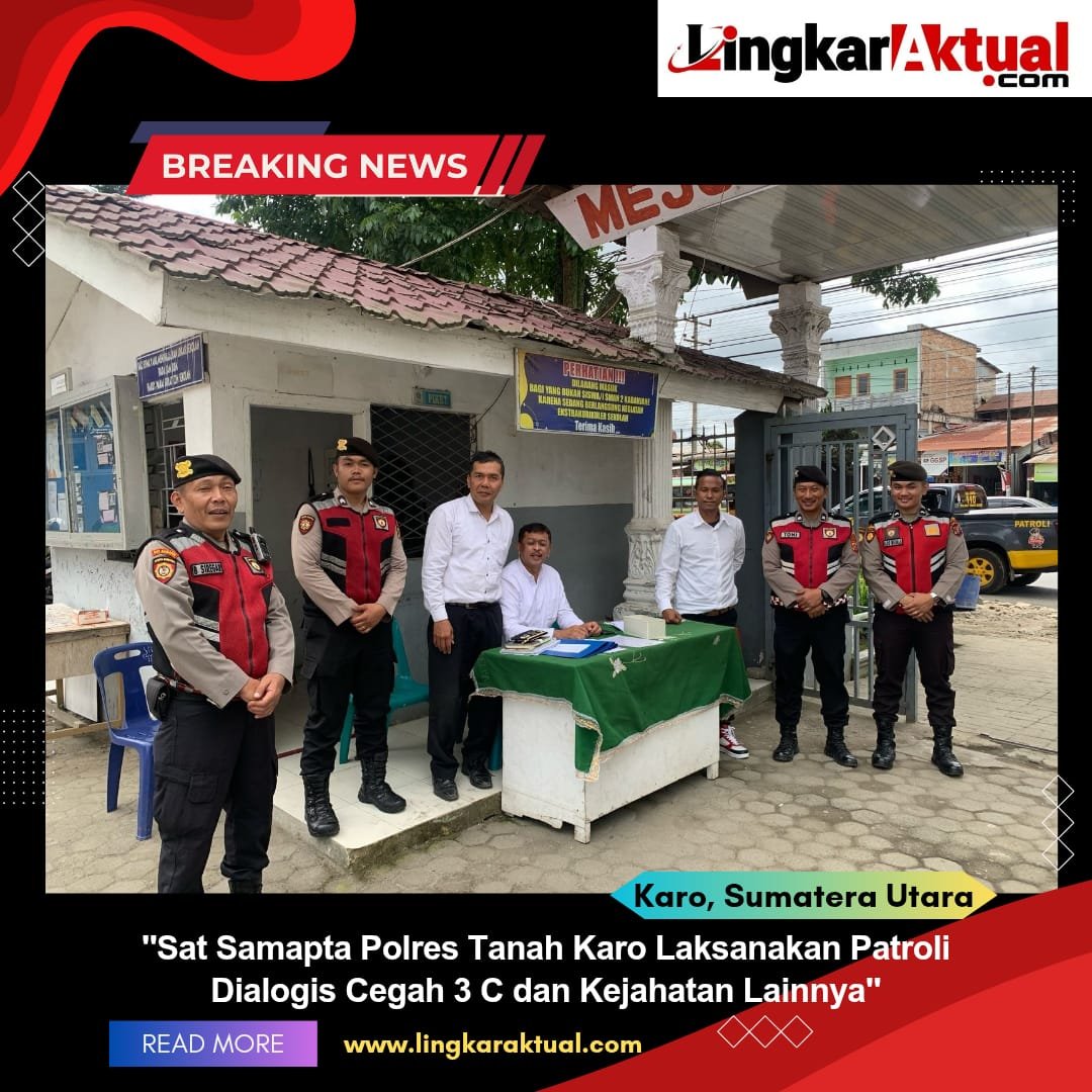 TANAH KARO, Sumatera Utara || LINGKARAKTUAL.COM || – Dalam upaya menciptakan situasi kamtibmas yang kondusif serta mencegah tindak kejahatan di wilayah hukumnya, Satuan Samapta Polres Tanah Karo melaksanakan kegiatan patroli dialogis pada Rabu (14/5/2025) pagi.