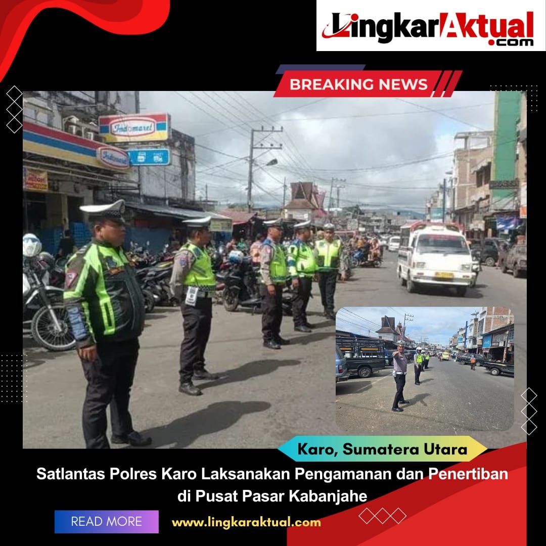 TANAH KARO, Sumatera Utara || LINGKARAKTUAL.COM || – Satuan Lalu Lintas Polres Tanah Karo melaksanakan kegiatan pengamanan dan penertiban di kawasan Pusat Pasar Kabanjahe, tepatnya di Jalan Kapten Bangsi Sembiring, pada Sabtu pagi (10/5). Kegiatan dimulai pada Pukul 09:30 WIB dan berlangsung hingga sampai selesai.