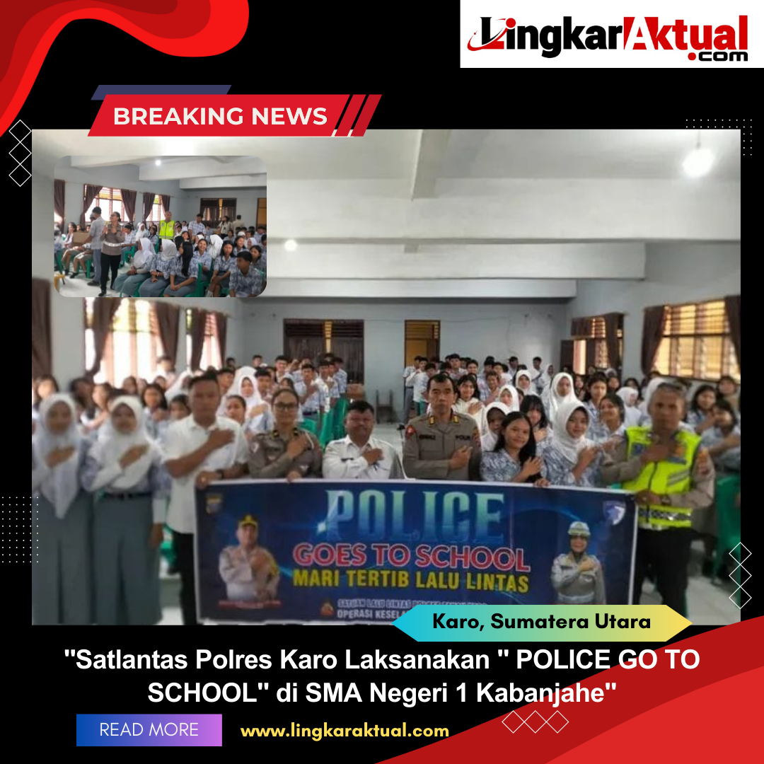 TANAH KARO, Sumatera Utara || LINGKARAKTUAL.COM || – Satuan Lalu Lintas (Satlantas) Polres Tanah Karo melaksanakan kegiatan “Police Go To School” di SMK Negeri 1 Kabanjahe pada Kamis (15/5/2025). Kegiatan ini bertujuan untuk memberikan penyuluhan, sosialisasi, himbauan, serta edukasi kepada para siswa dan guru tentang pentingnya tertib berlalu lintas.