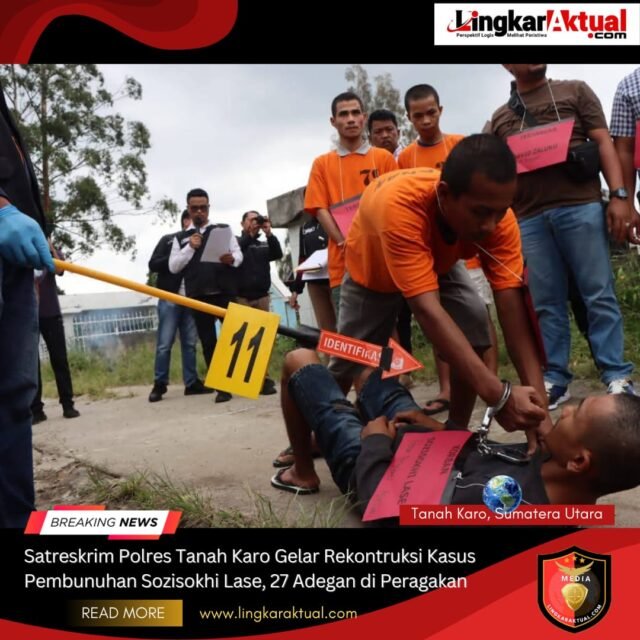 TANAH KARO, SUMATERA UTARA || LINGKARAKTUAL.COM || – Satuan Reserse Kriminal (Satreskrim) Polres Tanah Karo menggelar rekonstruksi kasus pembunuhan terhadap Sozisokhi Lase (20), korban yang sebelumnya ditemukan meninggal dunia di pinggir Sungai Lau Biang, Jalan Lingkar Kabanjahe, Kabupaten Karo. Rekonstruksi dilaksanakan pada hari Selasa (10/12/2025) sekitar pukul 11.00 WIB, bertempat di lokasi kejadian perkara.