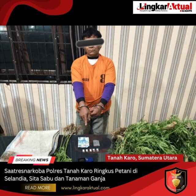 TANAH KARO, SUMATERA UTARA || LINGKARAKRUAL.COM || – Lingkaraktual.com Personel Opsnal Satresnarkoba Polres Tanah Karo yang dipimpin Kanit 2 Opsnal Ipda Romy Gintint, S.H, berhasil meringkus seorang pria berinisial HB alias GB (48), warga Desa Selandi, Kecamatan Payung, Kabupaten Karo. Tersangka yang berprofesi sebagai petani itu ditangkap saat berada di areal perladangan di Desa Selandi pada Selasa (23/9/2025) sekira pukul 16.30 WIB.