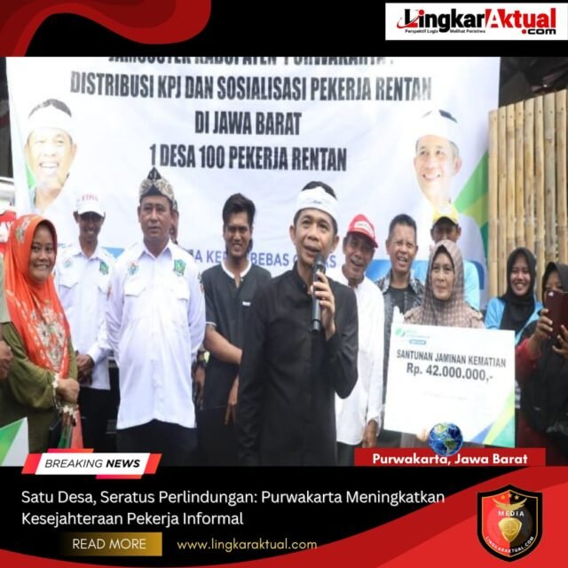 PURWAKARTA, JAWA BARAT || LINGKARAKTUAL.COM || – Jumat, 21 Nov 2025 – Di Purwakarta, semangat gotong royong dan kepedulian terhadap kesejahteraan pekerja kembali berkobar. Bupati Purwakarta, Saepul Bahri Binzein, hadir dalam acara “1 Desa 100 Perlindungan” yang diinisiasi oleh BPJS Ketenagakerjaan Purwakarta, menandai langkah penting dalam upaya melindungi setiap pekerja di pelosok desa.