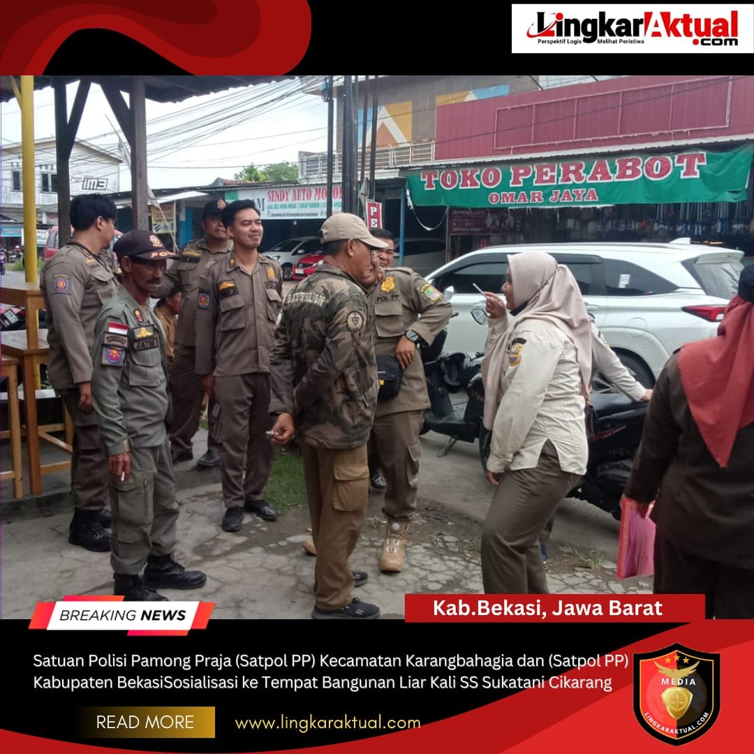 KABUPATEN BEKASI, Jawa Barat || LINGKARAKTUAL.COM || – Dalam rangka mensosialisasi bangunan Liar, SAT POL PP Kecamatan Karang Bahagia dan SAT POL PP Kabupaten Bekasi terjun kelokasi BANGLI untuk memberikan himbawan kepada masyarakat yang belum membongkar mandiri bangunannya di sepanjang jalan Pilar Sukatani yang meliputi 4 Desa yaitu mulai dari Desa: Sukaraya, Karang setia, Karang Anyar dan Karang Sentosa. Kamis (18/09/2025).