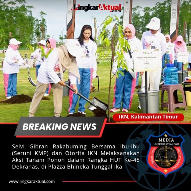 IKN, Kalimantan Timur || LINGKARAKTUAL.COM || – Dalam rangkaian HUT ke-45 Dekranas, Selvi Gibran Rakabuming bersama Ibu-Ibu Solidaritas Perempuan untuk Indonesia era Kabinet Merah Putih (Seruni KMP) dan Otorita IKN melaksanakan aksi penanaman pohon di Plaza Bhineka Tunggal Ika, Ibu Kota Nusantara (15/07/2025).