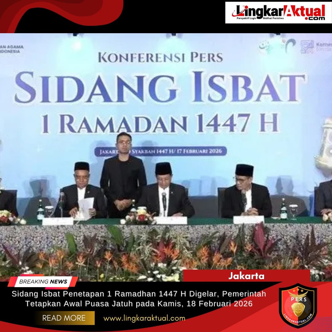 JAKARTA, NASIONAL, LINGKARAKTUAL.COM – Pemerintah melalui Kementerian Agama Republik Indonesia resmi menetapkan 1 Ramadhan 1447 Hijriah jatuh pada hari Kamis, 18 Februari 2026. Keputusan tersebut diumumkan usai pelaksanaan Sidang Isbat yang digelar pada pukul 17.00 WIB.