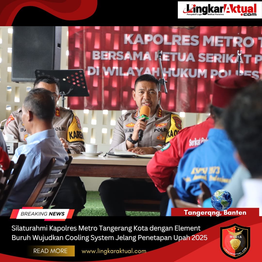 TANGERANG, BANTEN || LINGKARAKTUAL.COM || – Dalam rangka memperkuat komunikasi dan membangun sinergi dengan elemen masyarakat, Kapolres Metro Tangerang Kota Kombes Pol. Dr. Raden Muhammad Jauhari, S.H., S.I.K., M.Si. melaksanakan silaturahmi bersama elemen serikat buruh se-Kota Tangerang, bertempat di Rumah Makan Telaga Seafood Modernland, Kota Tangerang, pada Selasa (11/11/2025) pukul 11.00 WIB.