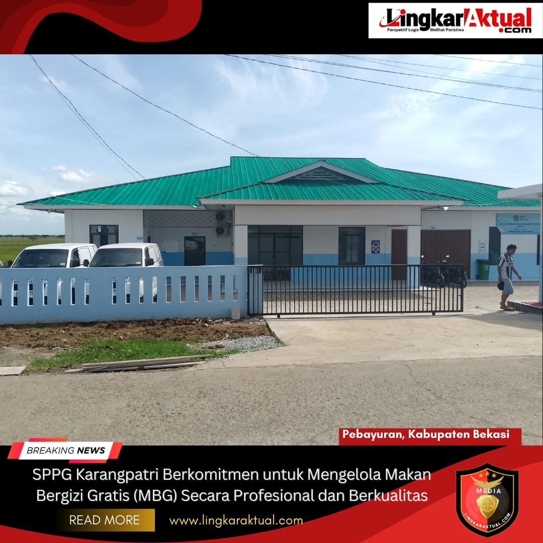 PEBAYURAN, KABUPATEN BEKASI || LINGKARAKTUAL.COM || – SPPG Karangpatri di Desa Karangpatri, Kec. Pebayuran, Kab. Bekasi berkomitmen mengelola Program Makan Bergizi Gratis (MBG) secara profesional dan bermutu untuk mewujudkan Generasi Emas 2045. Program ini bertujuan menekan stunting dan meningkatkan konsentrasi belajar siswa.sabtu( 28/12/25)