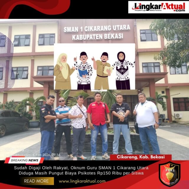 CIKARANG, KABUPATEN BEKASI, LINGKARAKTUAL.COM — Dugaan praktik pungutan liar (pungli) kembali mencuat di lingkungan pendidikan. Kali ini, oknum guru di SMAN 1 Cikarang Utara diduga memungut biaya psikotes sebesar Rp150.000 per siswa, meski para tenaga pendidik tersebut telah menerima gaji dari negara. Jumat (06/02/2026).