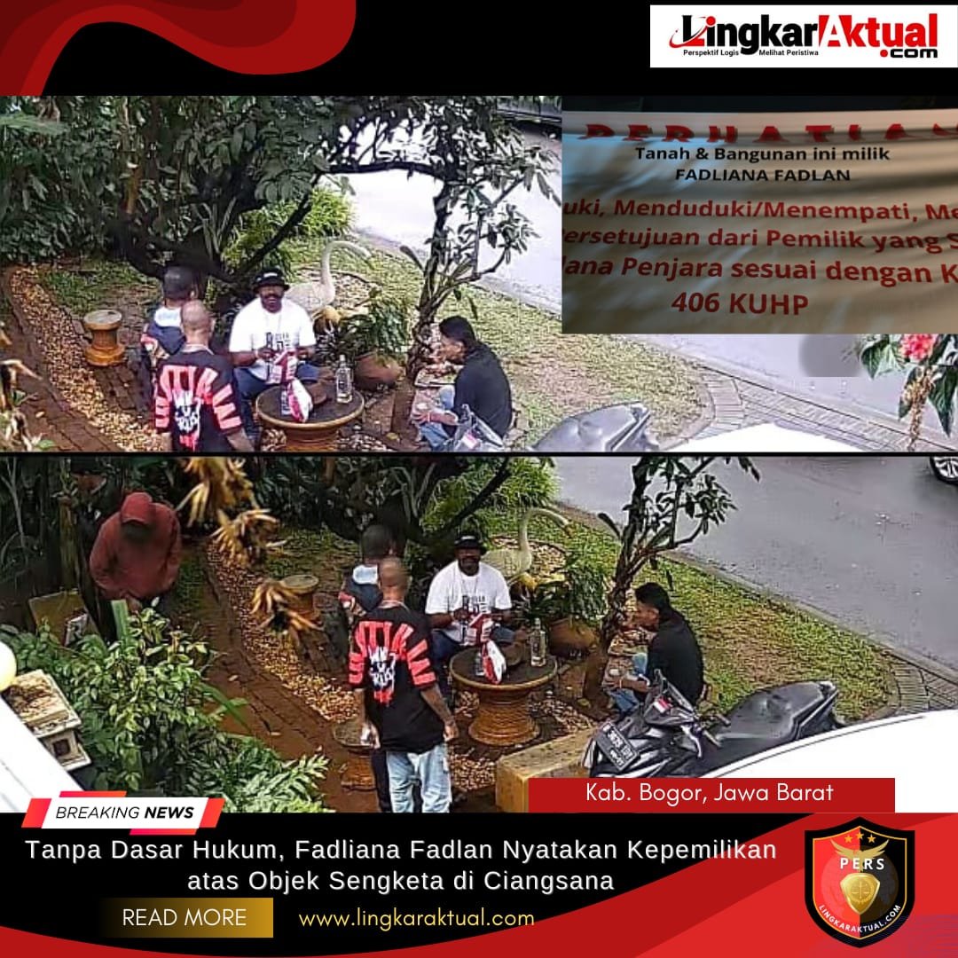 KABUPATEN BOGOR, JAWA BARAT, LINGKARAKTUAL.COM – Sebuah rumah di Perumahan Cluster Florence, yang berlokasi di Jalan Kota Wisata Blok H1/19 RT 001/024, Desa Ciangsana, Kecamatan Gunung Putri, Kabupaten Bogor, Jawa Barat, menjadi sorotan setelah dipasangi spanduk bertuliskan: “Bahwa Tanah dan Bangunan ini milik Fadliana Fadlan.”
