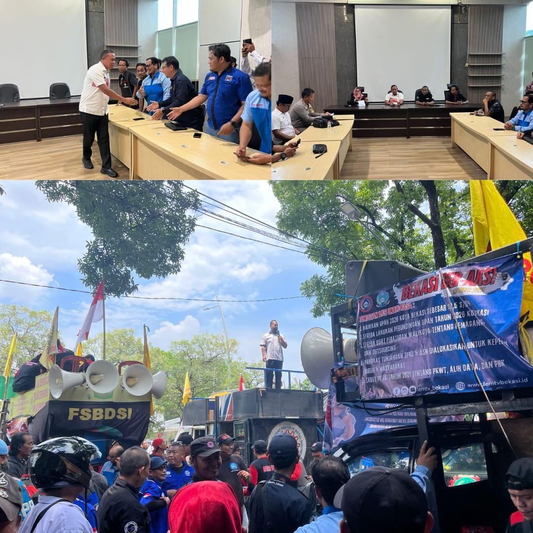 Usai menyampaikan aspirasinya, perwakilan buruh diterima untuk melakukan audiensi bersama Plt Kepala Dinas Tenaga Kerja (Disnaker) Kota Bekasi dan Wali Kota Bekasi Tri Adhianto di Gedung Plaza Pemkot Bekasi. Audiensi tersebut membahas tuntutan utama buruh, mulai dari kejelasan kenaikan UMK hingga desakan untuk mencabut PP Nomor 35 Tahun 2021 yang mengatur aspek ketenagakerjaan.