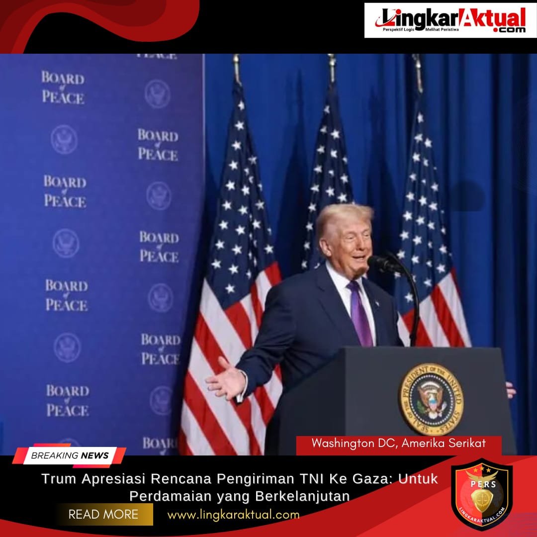 WASHINGTON DC, AMERIKA SERIKAT, LINGKARAKTUAL.COM – Presiden Amerika Serikat Donald Trump menyampaikan apresiasi kepada Indonesia atas kontribusi nyata dalam upaya menjaga gencatan senjata dan mendorong perdamaian berkelanjutan di Gaza.