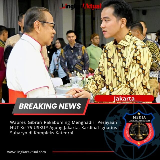 JAKARTA || LINGKARAKTUAL.COM || – Wapres Gibran Rakabuming menghadiri perayaan HUT ke-75 Uskup Agung Jakarta, Kardinal Ignatius Suharyo yang digelar di Kompleks Katedral, Jakarta, Selasa(15/07/2025).